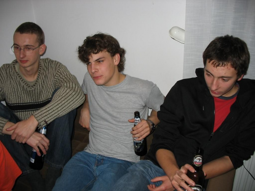 browara co prawda nie pilem (chore gardlo, a cieplego nie wypije), ale za to dostalem herbate. zaserwowal szczypior, u ktorego goscilismy tego wieczora. wyjatkowo duzo nas cos bylo... gletscher, sqter, czarek, jadra, alex, qter, hakeem, szczypior i ja.. az sie dziwie, ze udalo sie nam wszystkim pomiescic. na chwile zawitala nawet siostra szczypiora, ktorej jednak nie mialem okazji sie przyjrzec... a szkoda ;)